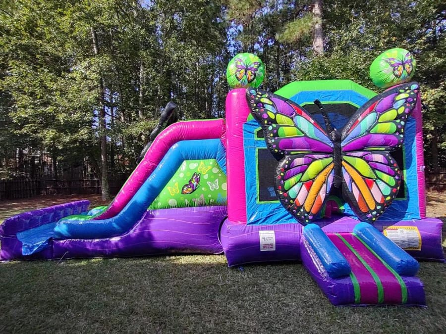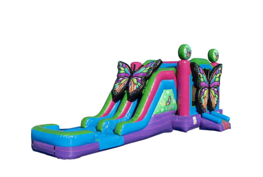๐๐ปIncludes a bounce house, a climbing wall, a double lane slide and a basketball hoop. (pool attachment when is used as a water slide)