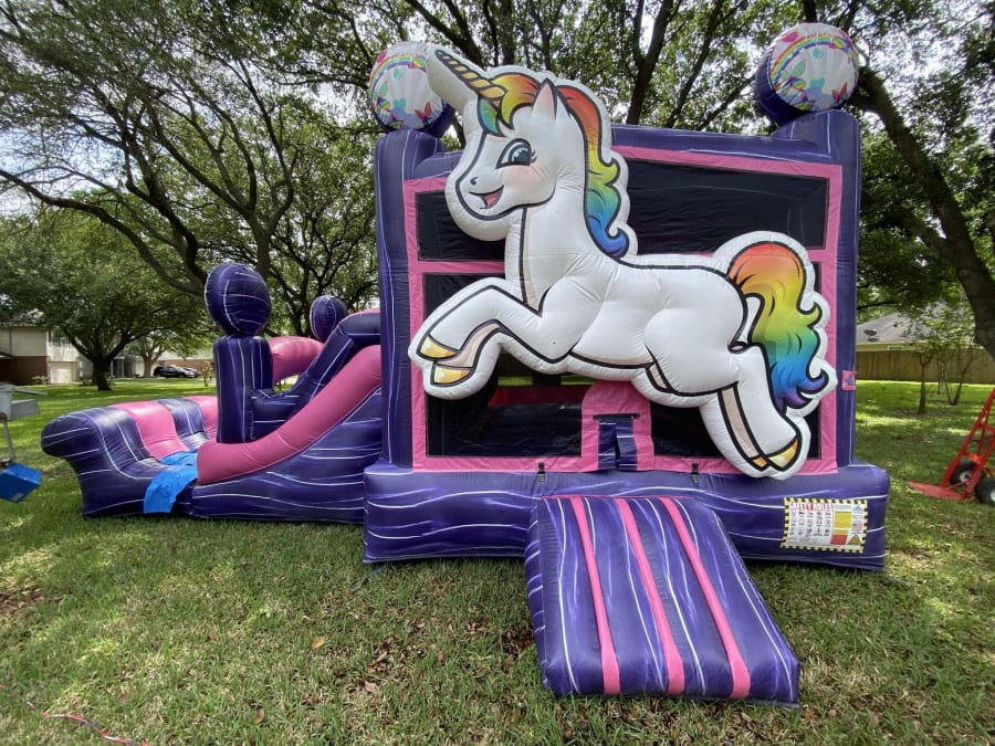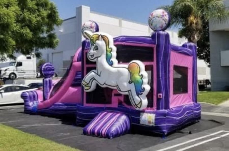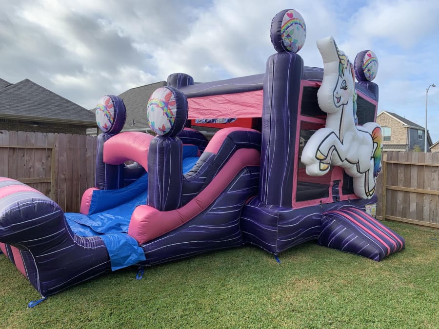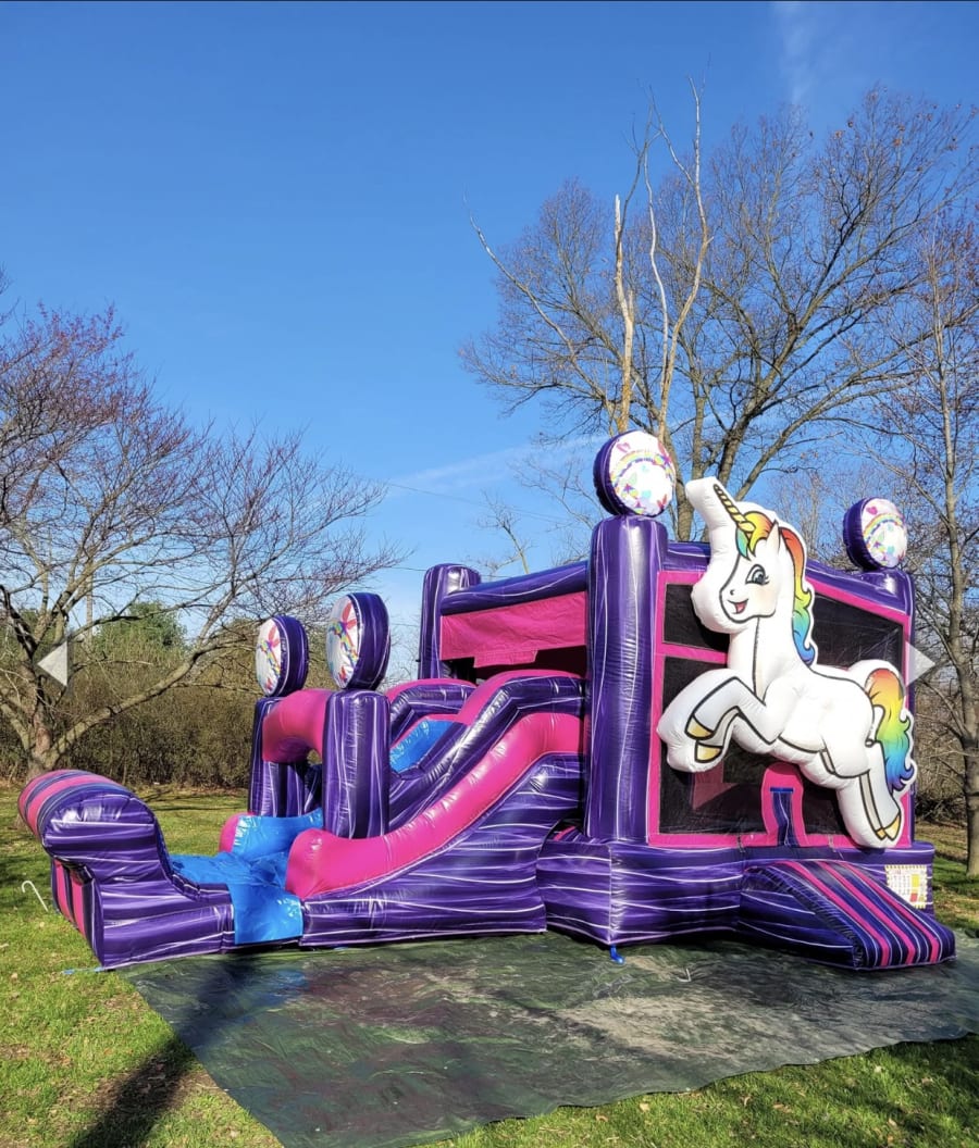 👉🏻Includes a bounce house, a slide, a climbing wall and a basketball hoop. (Pool for water option)