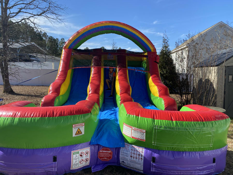 👉🏻As a water slide Requires a workable water spigot no further than 50ft. from set up location. Requires a quality water hose no less than 50ft. in length pulled to setup area before arrival.