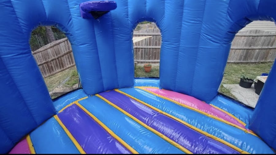 ๐๐ปIncludes a bounce house, a climbing wall, a slide and a basketball hoop.