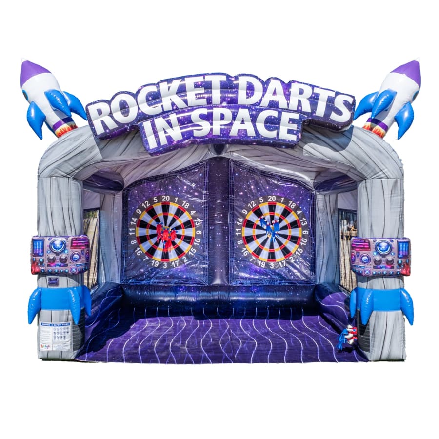 The Rocket Darts in Space inflatable dart throwing game is a double target game with a real velcro dart board! Comes with one set of 4 Rocket Darts!