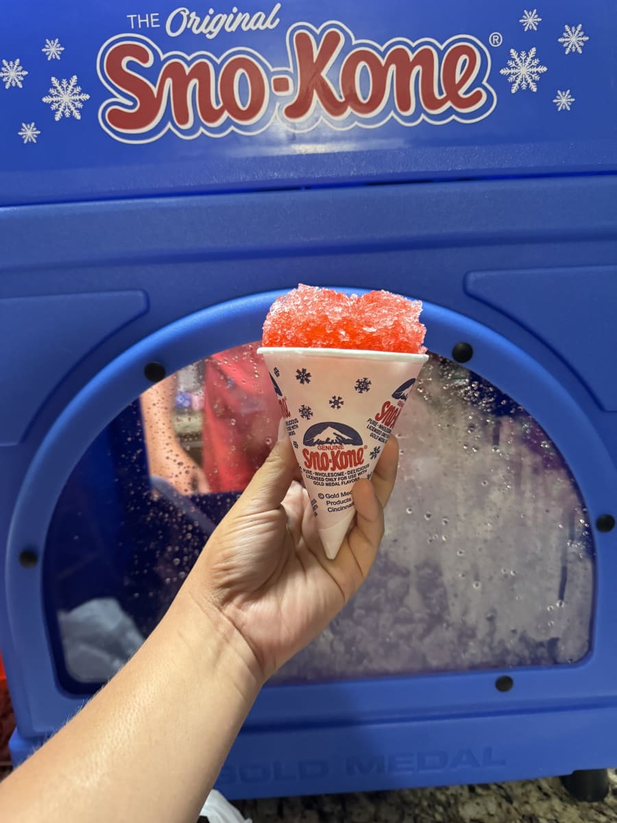 Each rental contains 1 Cherry Sno-Kone® Syrup (25.4 fl oz), 1 Blue Raspberry Sno-Kone® Syrup (25.4 fl oz), and 50 Sno-Kone®Cups. (small styrofoam cups) **Ice is NOT included
