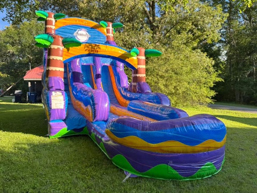 👉🏻As a water slide Requires a workable water spigot no further than 50ft. from set up location. Requires a quality water hose no less than 50ft. in length pulled to setup area before arrival.