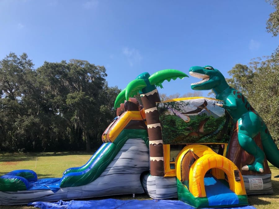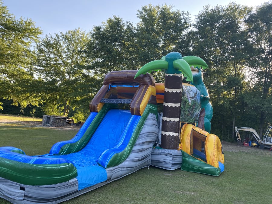 ๐๐ปIncludes a bounce house, a slide and a basketball hoop.