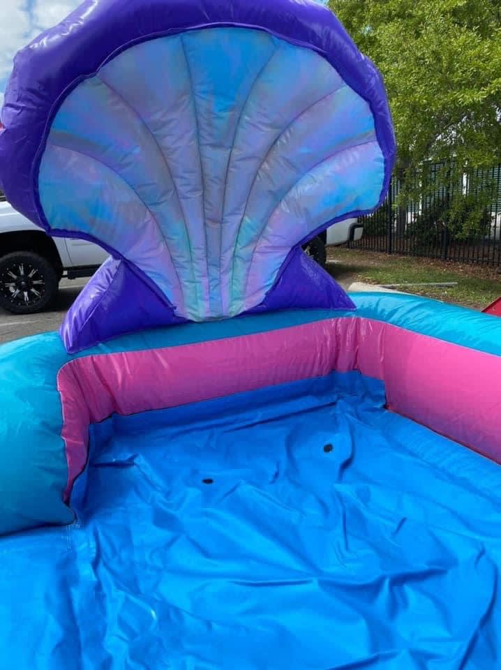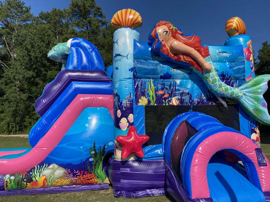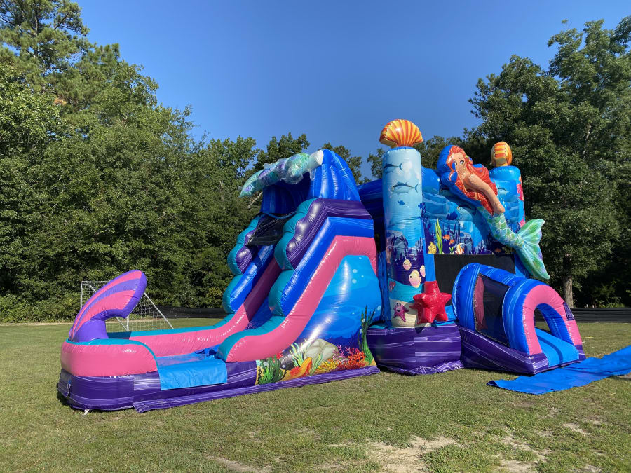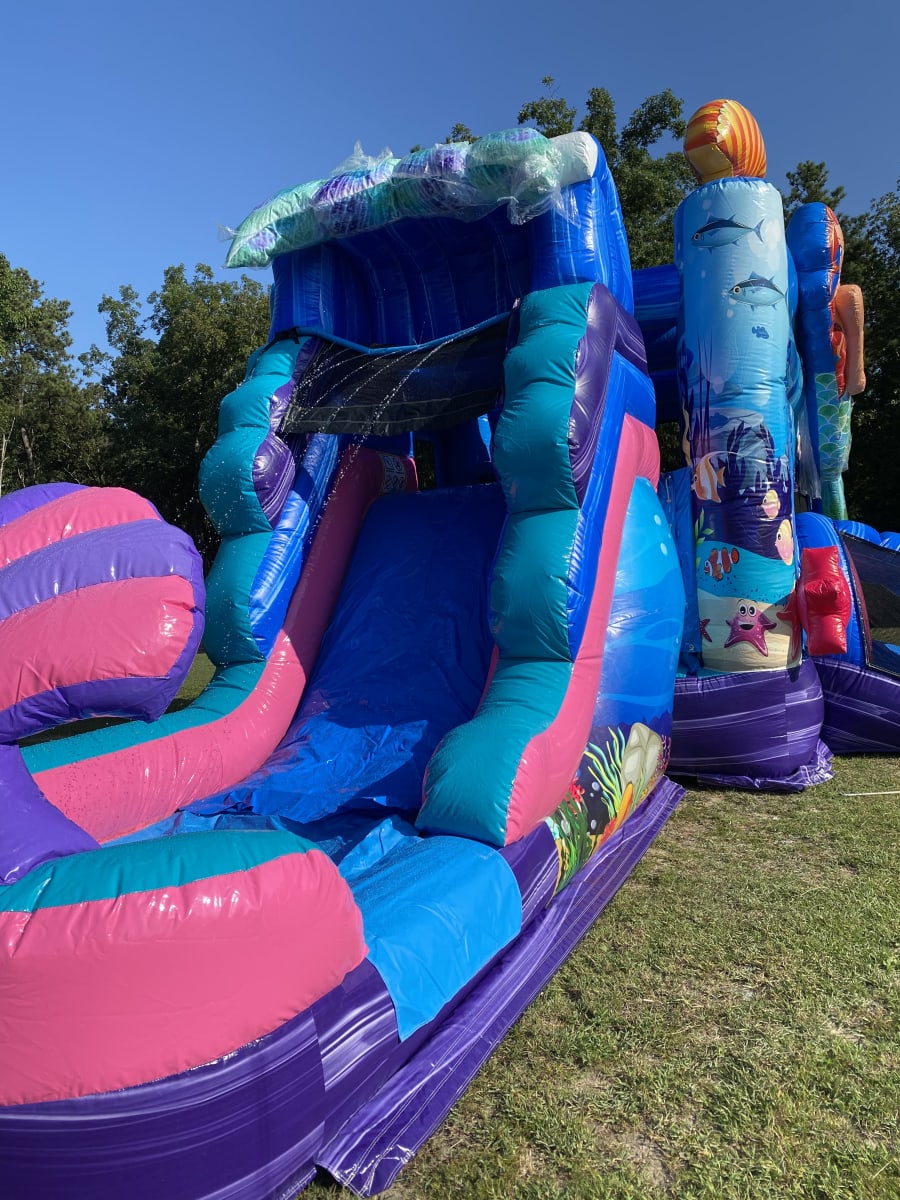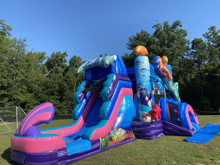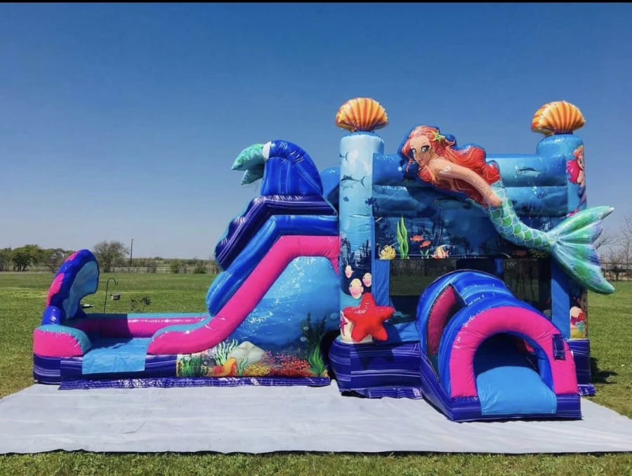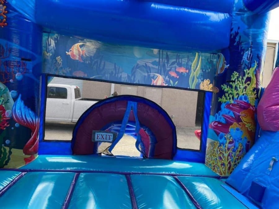 👉🏻Includes a bounce house, a slide and a basketball hoop.