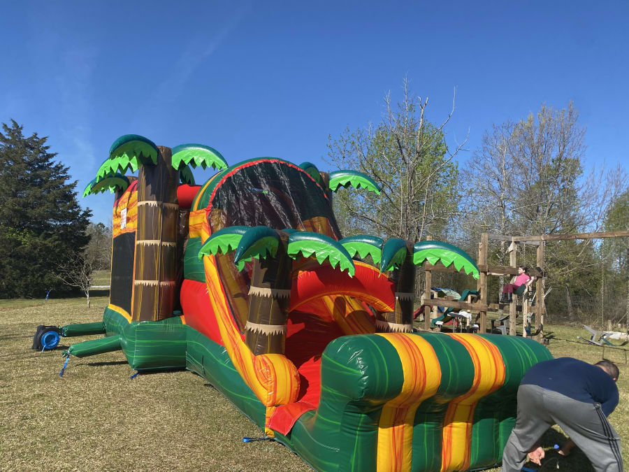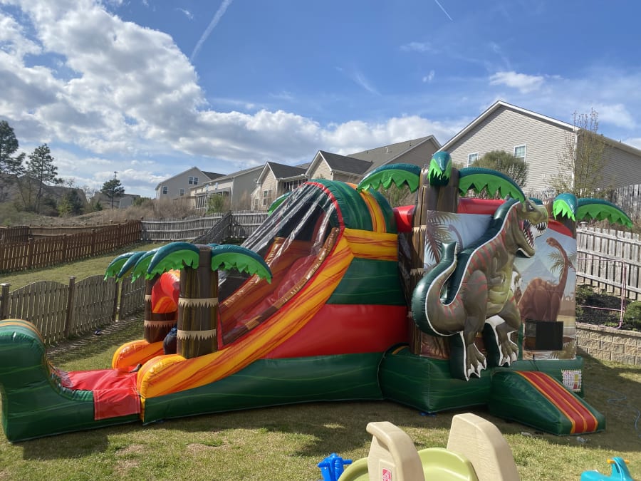 👉🏻Includes a bounce house, a slide, a climbing wall and a basketball hoop. (Pool for water option)
