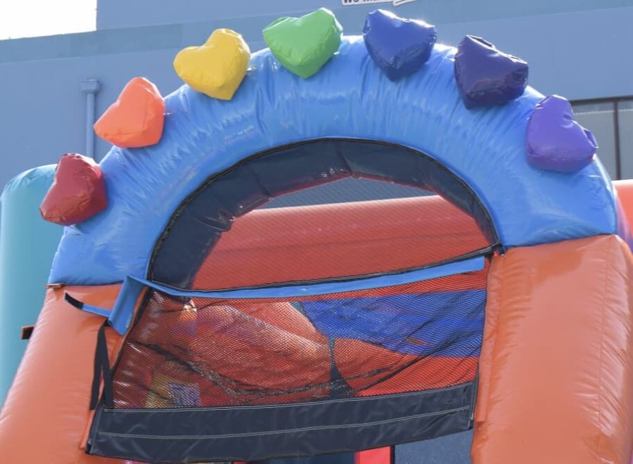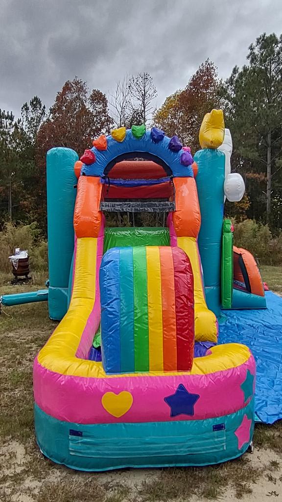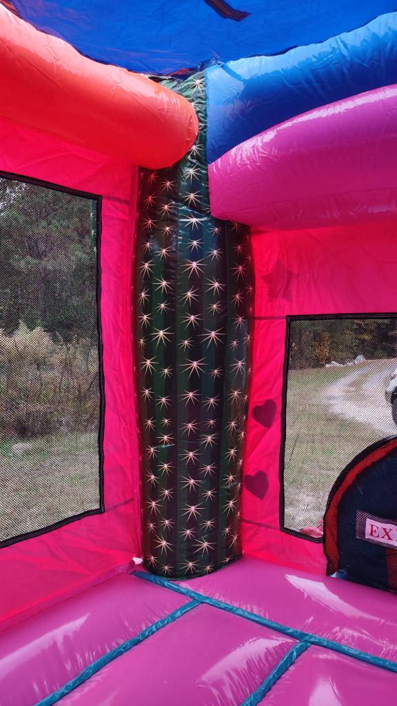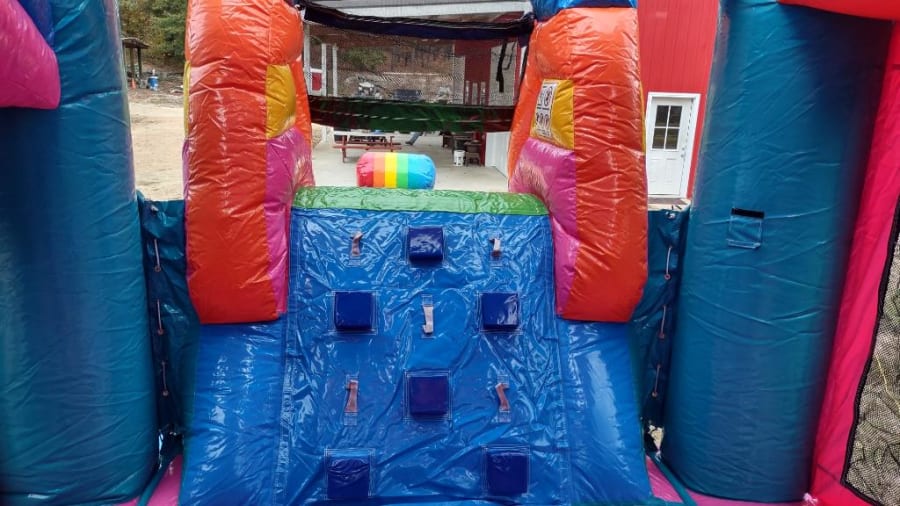 👉🏻Includes a Large bounce house, 1 slide, a climbing wall and a basketball hoop.